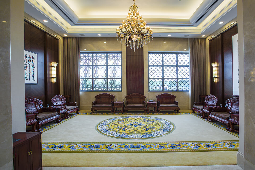 貴賓接待室地毯是接待領(lǐng)導(dǎo)和貴賓的地毯,裝飾一般以新中式和簡歐風(fēng)格居多,貴賓室格調(diào)是大氣、高貴、典雅、嚴肅而不失活躍,具有一定的地域文化品味。